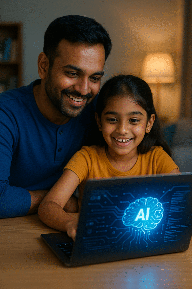 Join our free workshop or grab our “AI Tools for Kids” guide — just send us a WhatsApp message saying “AI START”.